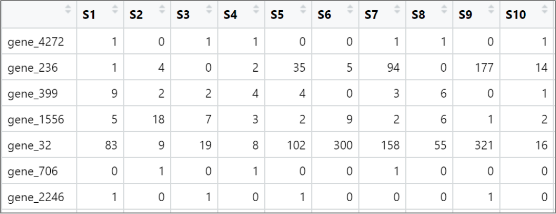 数据矩阵,每一列为样本名,每一行为各种指标数据名,如OTU,基因ID,代谢物名称等,可以提交丰度矩阵或通过0/1代指某个特征在样本中存在与否